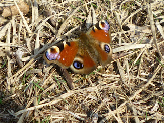 Finally I was pleased to come across this fresh looking Peacock butterfly (Aglais io) which was resting on the path in front of me and enjoying the warm spring sunshine. A strong flyer and common throughout Britain, it certainly adds a bit of colour to a walk.