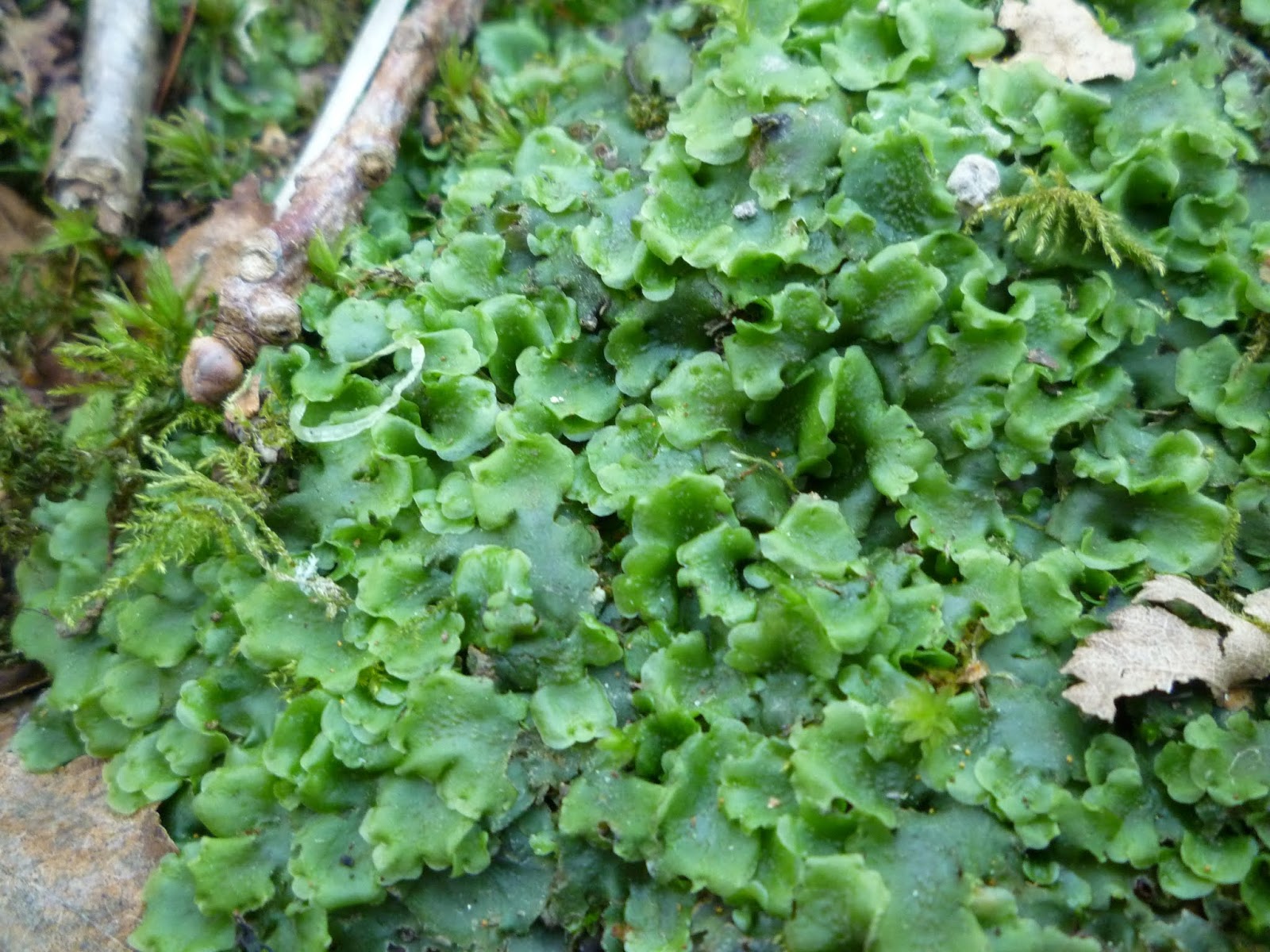 Another member of the Bryophyte group often found by streams and damp flushes are the liverworts and these very simple plants have stems and leaves but no real roots. You can find them clinging to  damp streamside banks by means of modified stems (rhizoids) and form a dense mat of broad fleshy leaves, resembling the lobes of the liver, hence their name. Fossils of these plants have been found dating back 470 million years and provide the earliest evidence of plants colonising land.