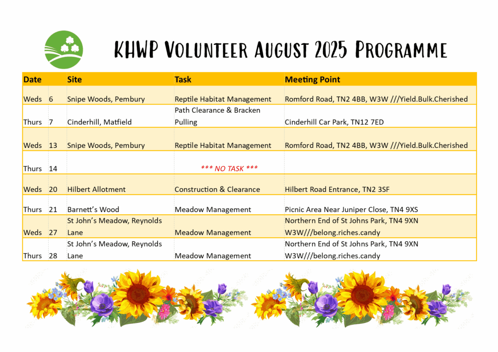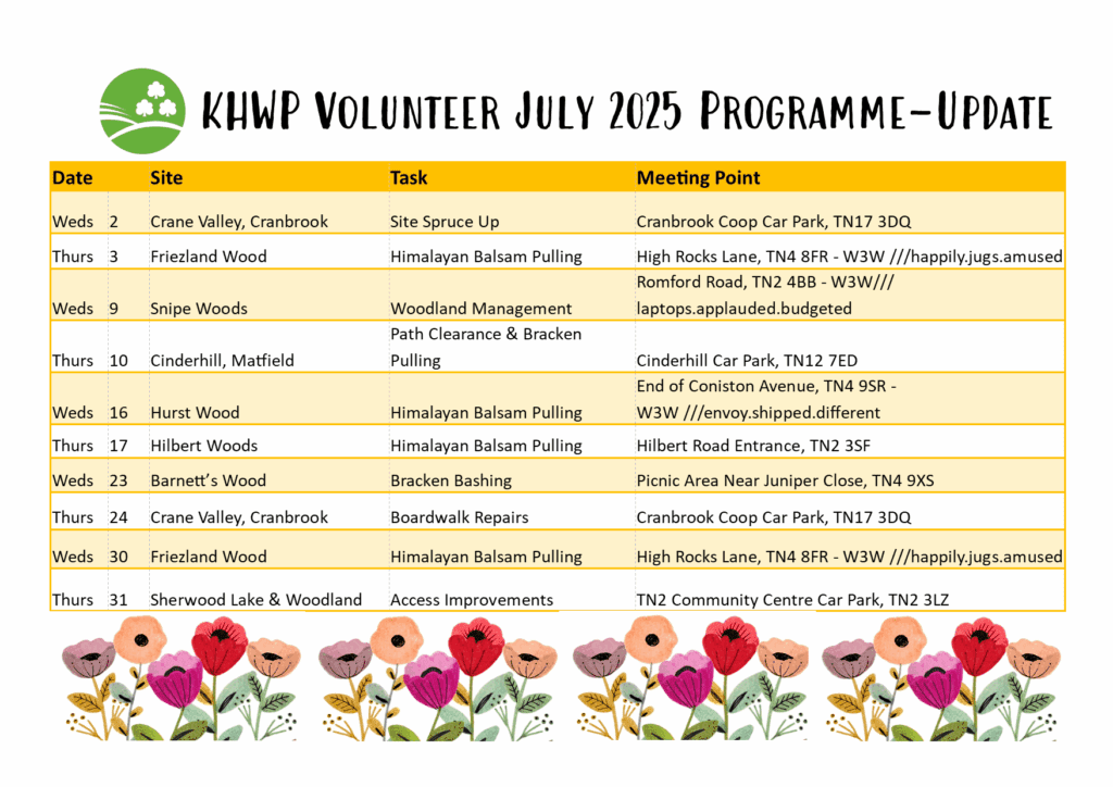 for more information on each task please see the events & task page or email cmp@khwp.org.uk