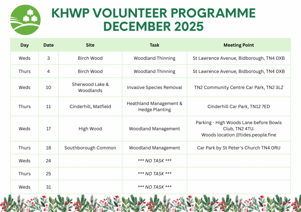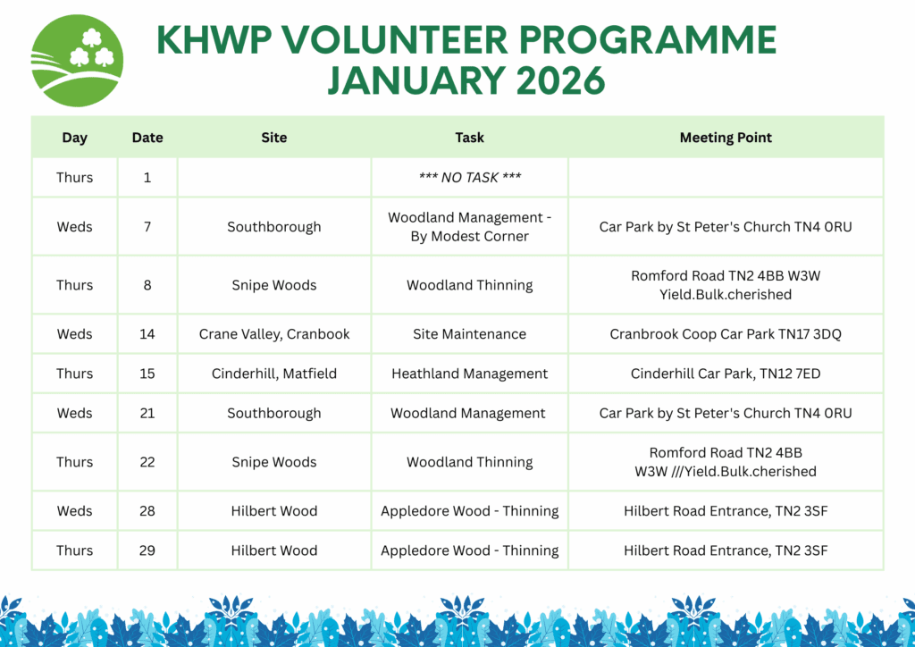 for more information on each task please see the events & task page or email cmp@khwp.org.uk